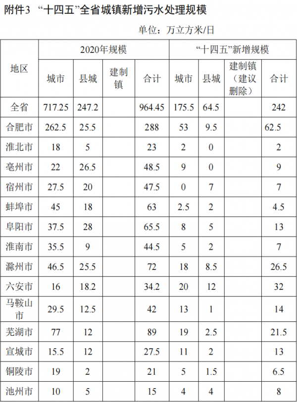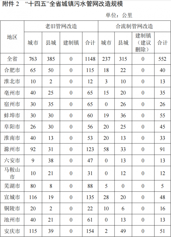 “十四五”安徽省城鎮(zhèn)污水處理及資源化利用設(shè)施建設(shè)項(xiàng)目庫